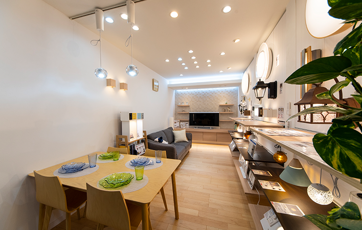 ゆっくりとご覧いただけるショールームは、住まいへの夢を実現させるための展示をご用意しています。
