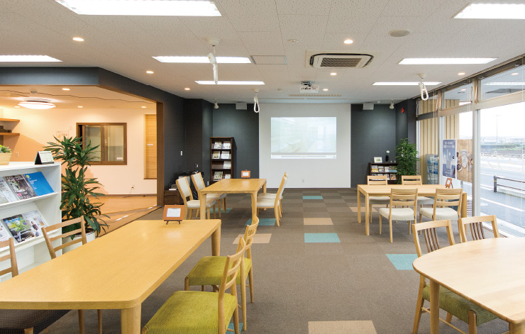 本社ショールームの「デザインギャラリー」は、新築のお打ち合わせスペースや、内装や外装の展示スペース、