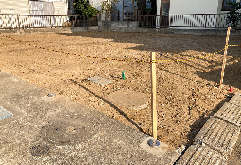 建設地の地耐力の測定を行い、地耐力不足の場合は地盤の補強工事を行います。