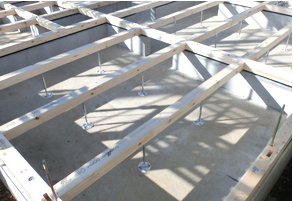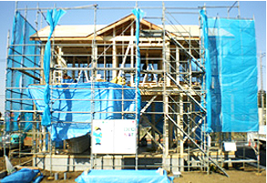 構造体としてまず、土台をしっかりと基礎に固定します。そこから柱、梁などを組み立てて主要な骨組みを作ります。