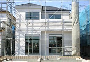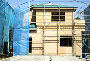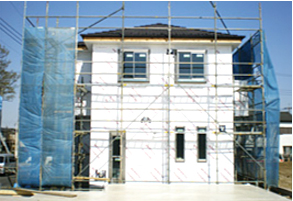 (サイディング)外装材を貼ります。この工程が完了すると外観がほぼ完成です。