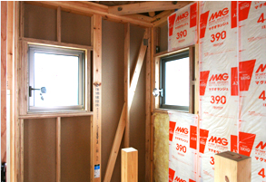 フローリング、断熱材、窓枠などの施工を行います。この時に電気の配線、および給排水の配管工事を行います。