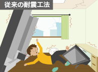 地震時に、建物自体は耐えるが、大きく揺れて、室内の家具等の転倒をまねく。