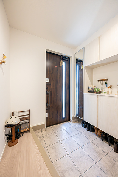 ベビーカーを押したまま中に入ってもゆとりのある広さの玄関。