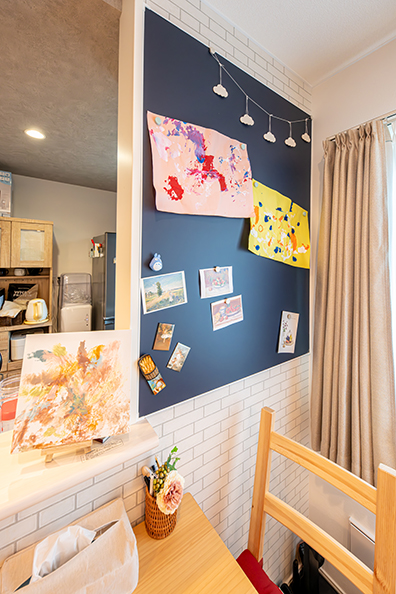 お子さまの描いた大切な絵も、穴を開けずに飾れます。