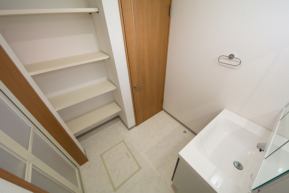 収納も豊富なサニタリールーム。