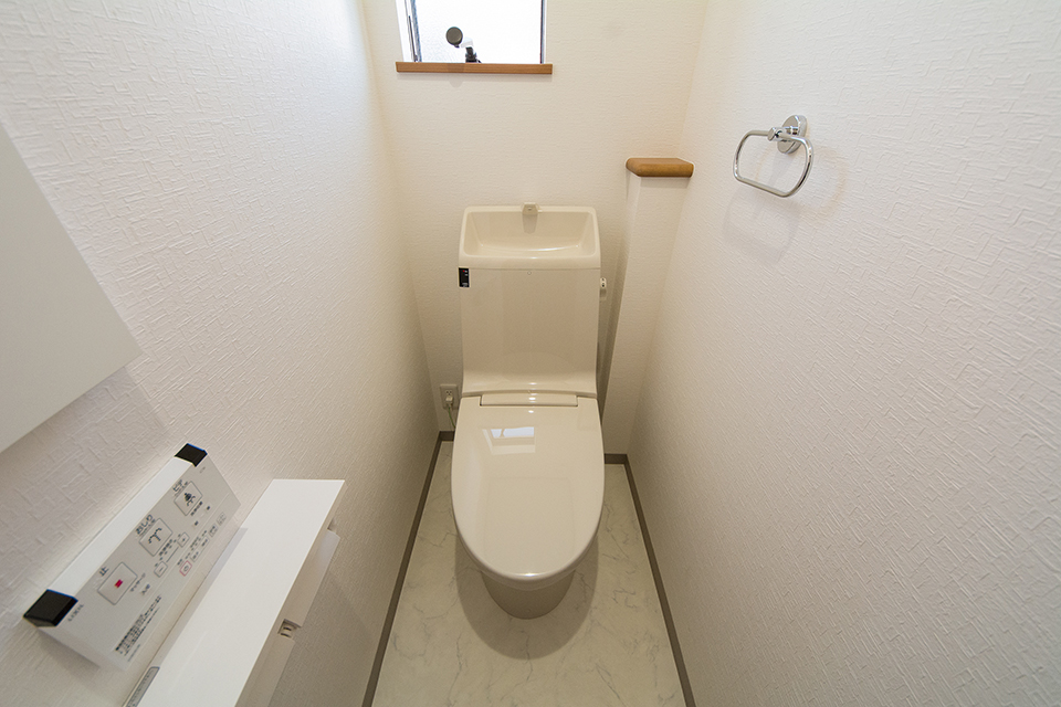 白を基調とした清潔感のある2階トイレ