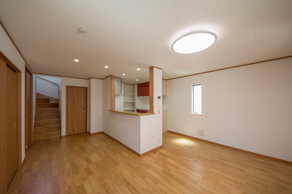 1階洋室。ブラックチェリーのフローリングがナチュラルな空間を演出します。
