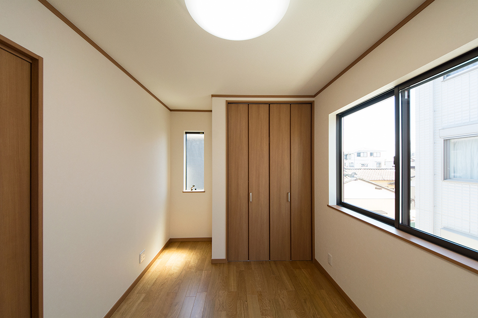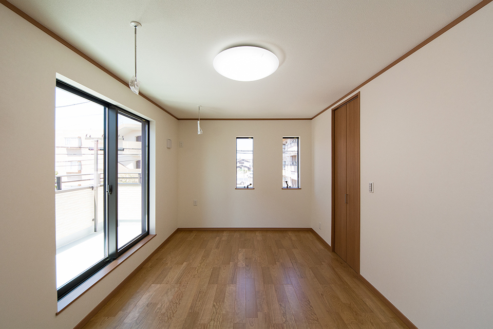 2階洋室。ブラックチェリーのフローリングがナチュラルな空間を演出します。