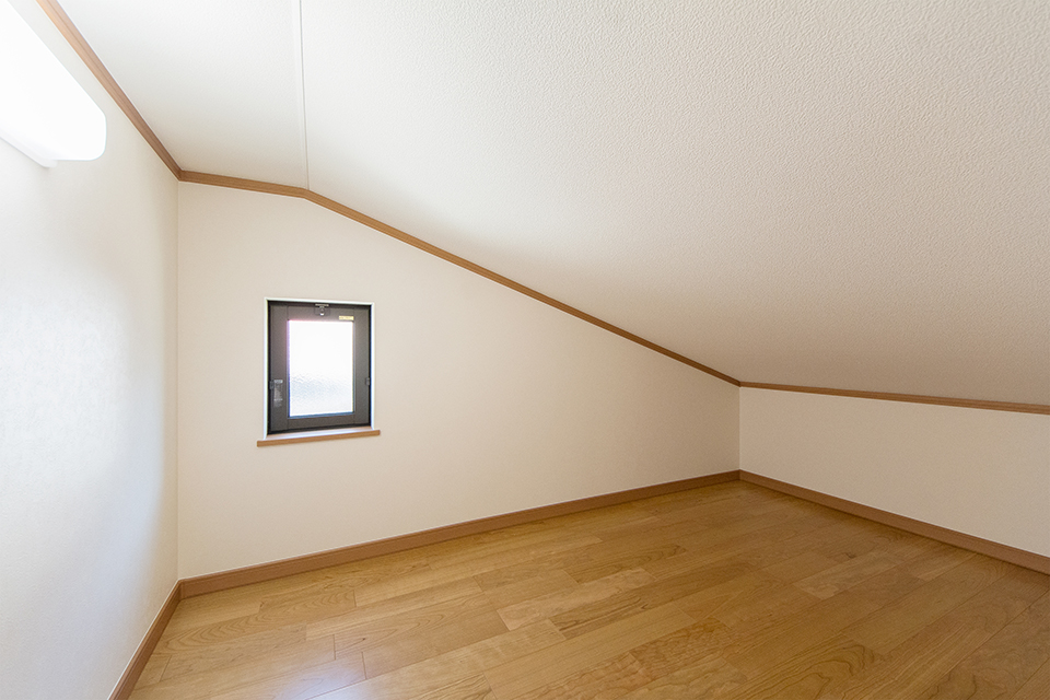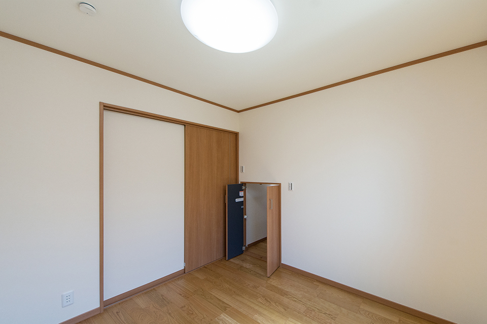 大きな収納を設えた2階洋室。ブラックチェリーのフローリングがナチュラルな空間を演出します。