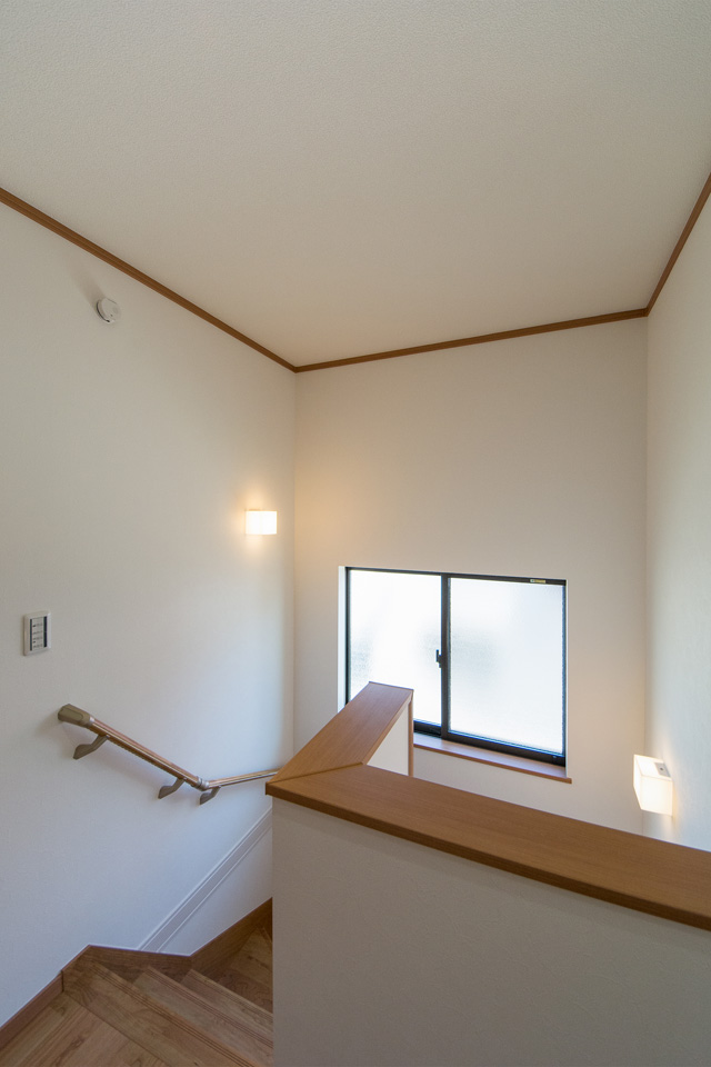 大きな窓をしつらえた、明るく開放感のある階段。