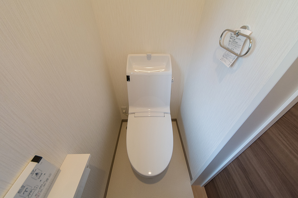 白を基調とした清潔感のある2階トイレ。