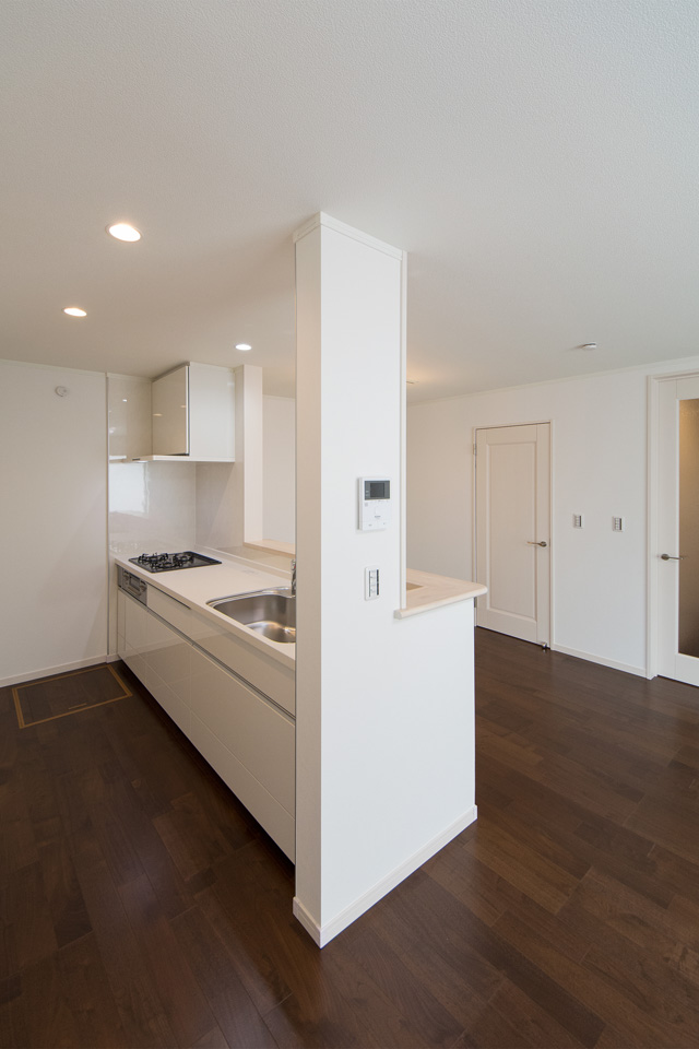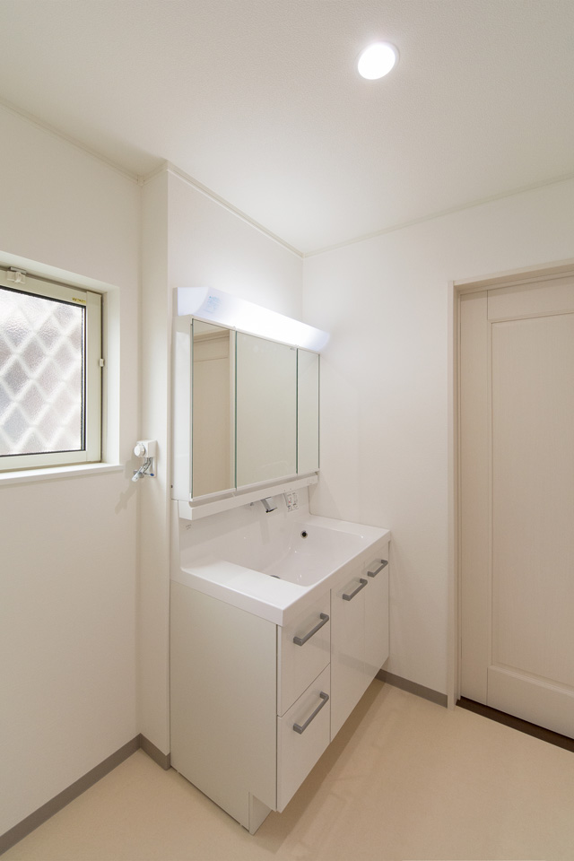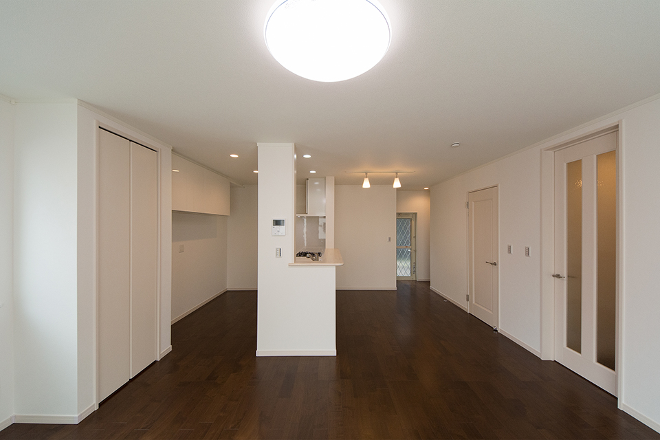 建具は白を基調にし、フローリングの色とメリハリをつけた仕上がり。