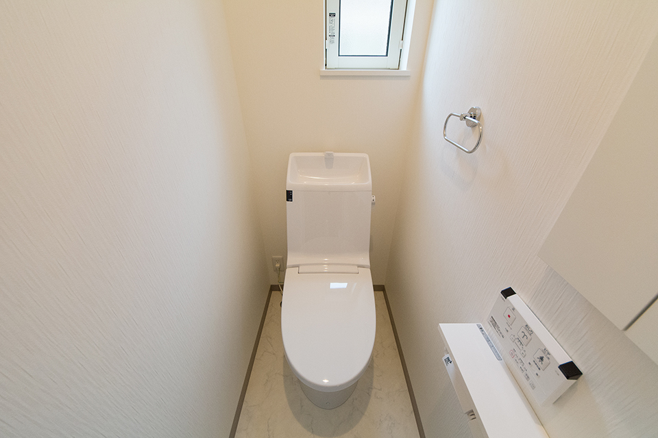白を基調とした清潔感のある1階トイレ