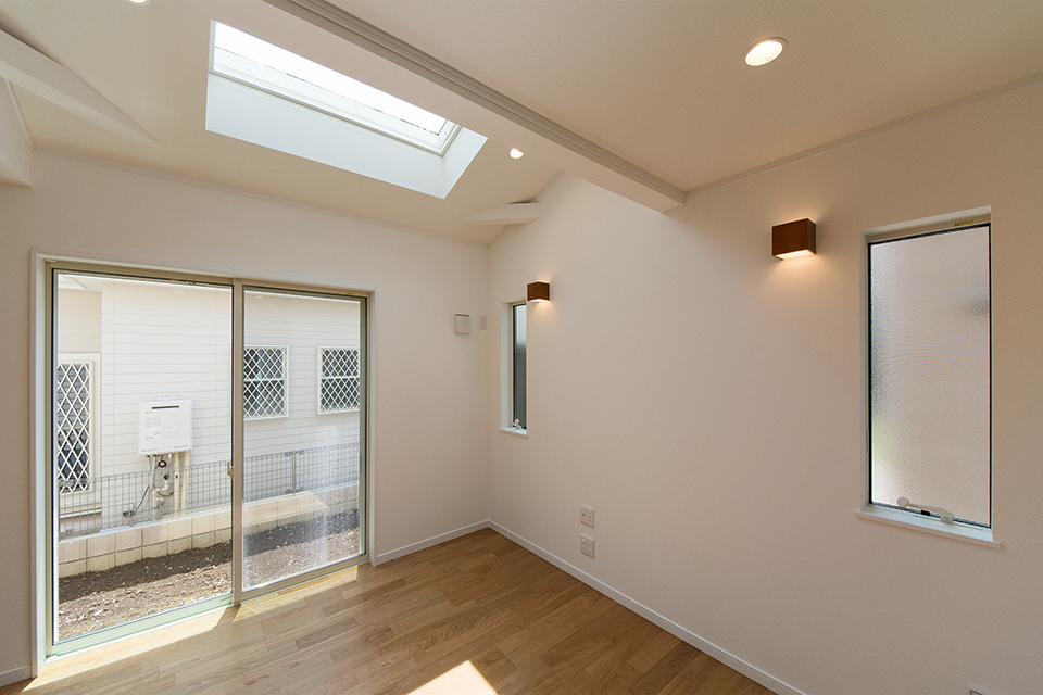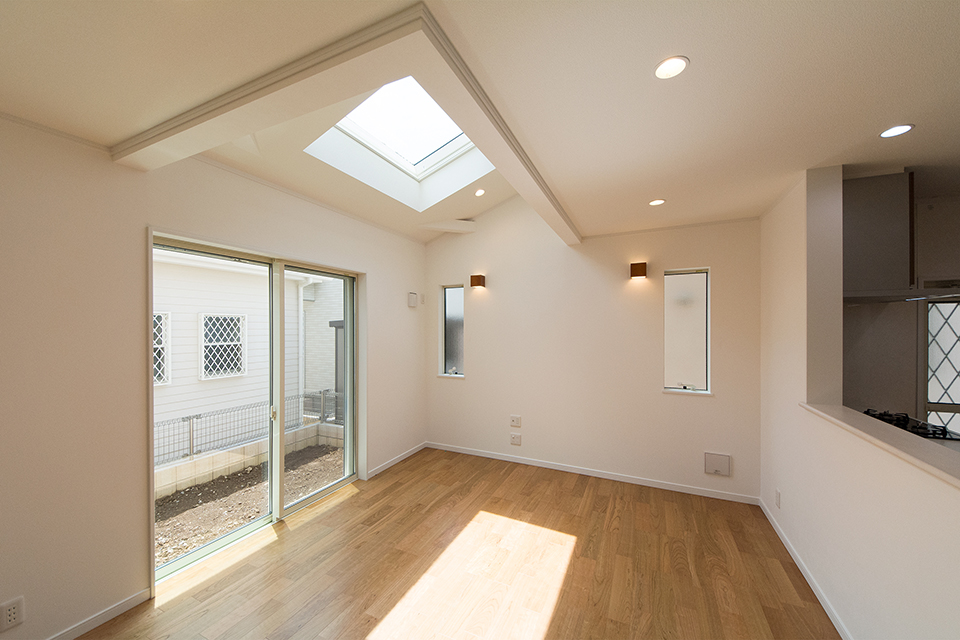 リビング上部にはトップライトを設え、空間に自然のやさしい光を取り込みます。