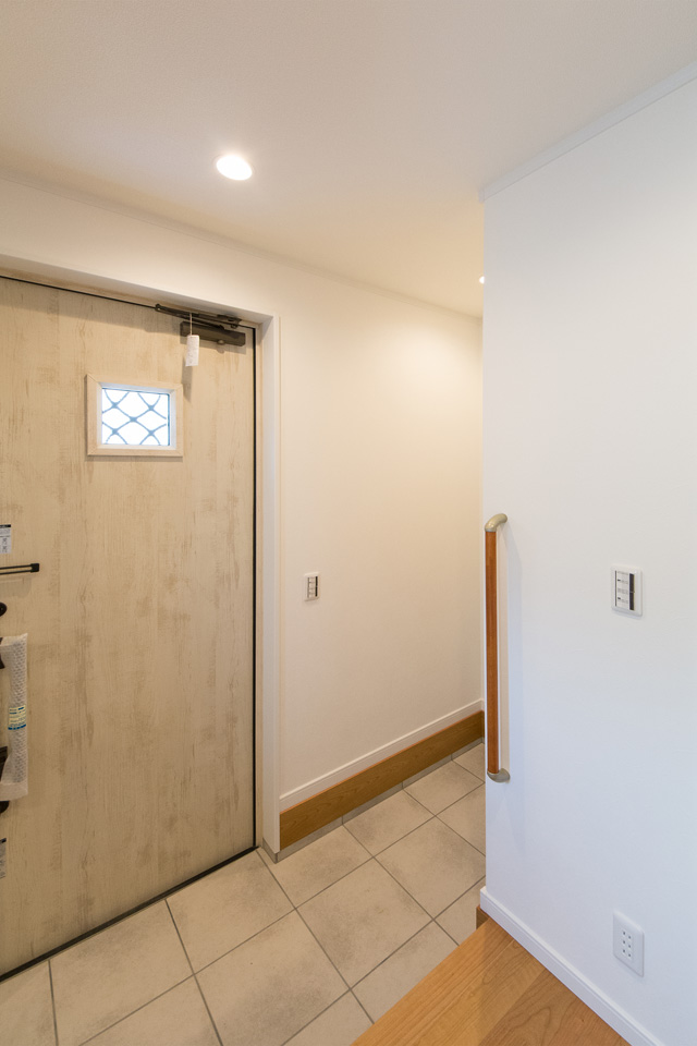 ナチュラルな雰囲気を演出するエクリュアイボリーの玄関ドア。