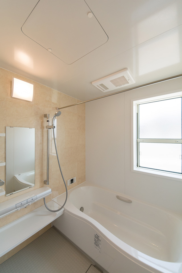 ベージュのアクセントパネルがナチュラルな雰囲気を演出。
