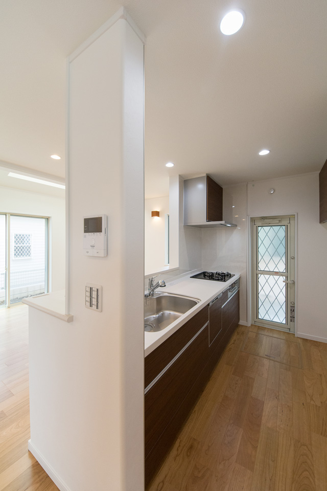 シンプルモダン埼玉県狭山市30坪以上玄関土間、リビングイン階段、ハイスタッド、アイランド/ペニンシュラキッチン