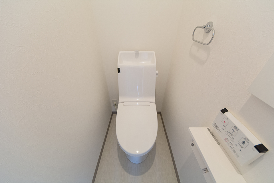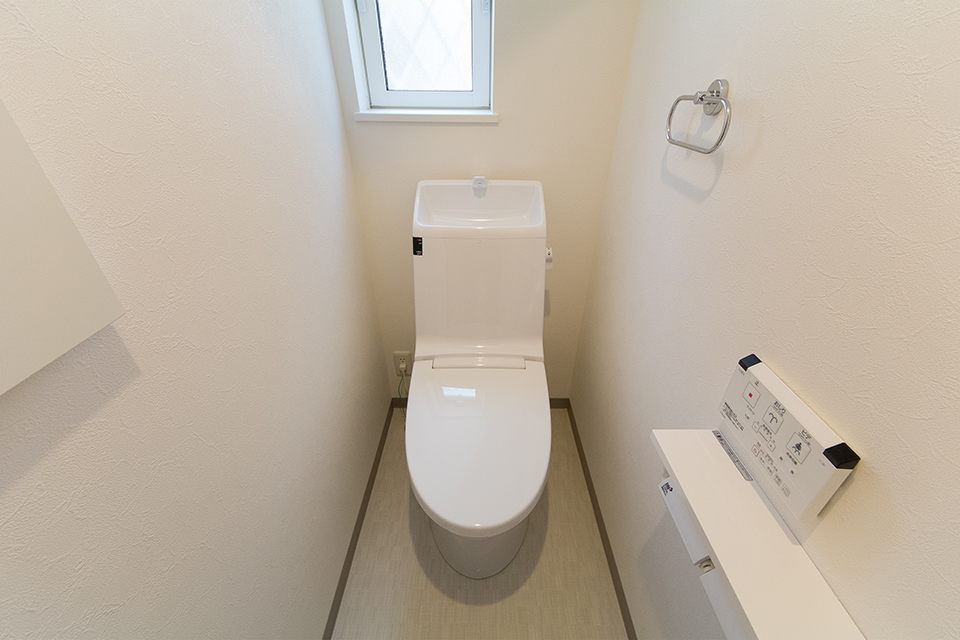 白を基調とした清潔感のある1階トイレ。