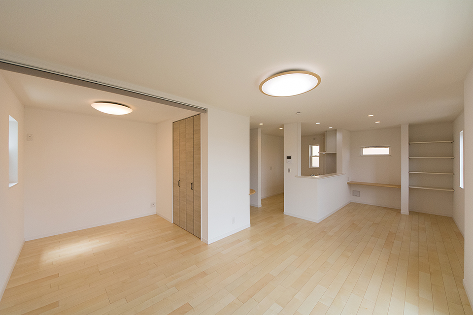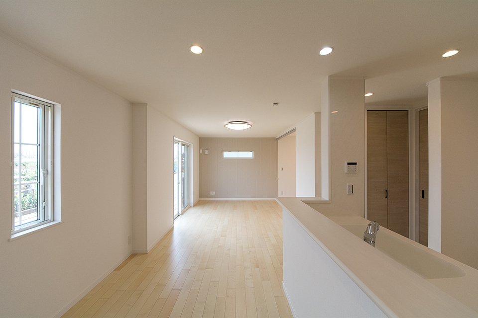 木のぬくもりを感じるシカモアのフローリングが、穏やかで心地のよい空間を演出。