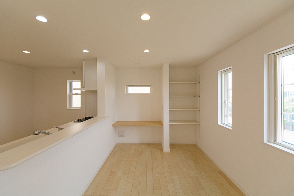 ダイニングスペース横のスタディコーナー。家族の笑顔とコミュニケーションを育みます。