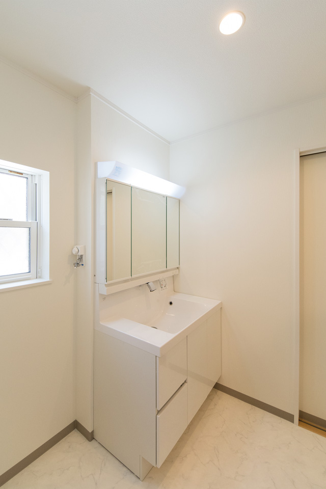 白を基調とした清潔感のあるサニタリールーム。