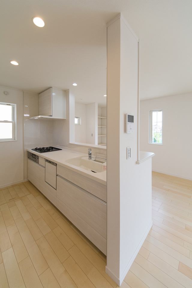 白を基調とした清潔感のあるキッチンスペース。