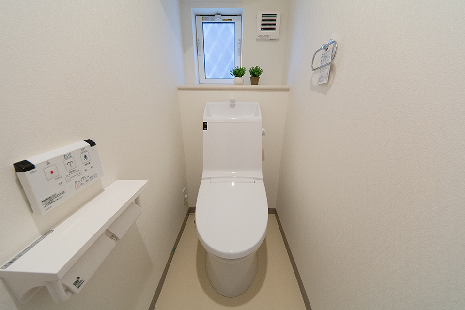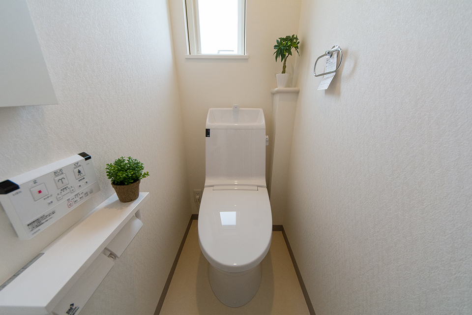 白を基調とした清潔感のある1階トイレ。