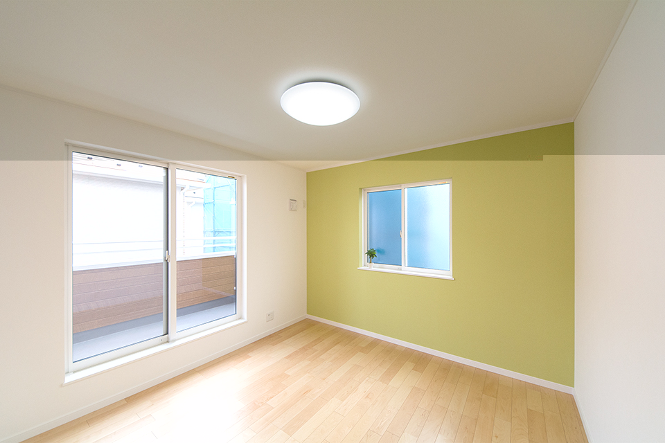 グリーンのアクセントクロスが爽やかな印象の空間を演出。