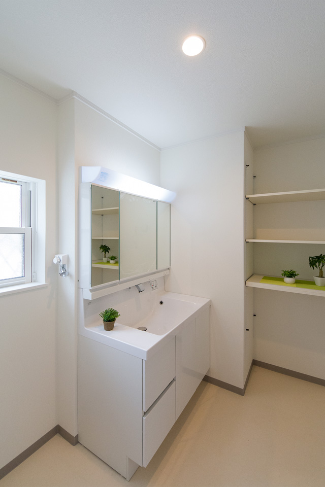 白を基調とした清潔感のあるサニタリールーム。
