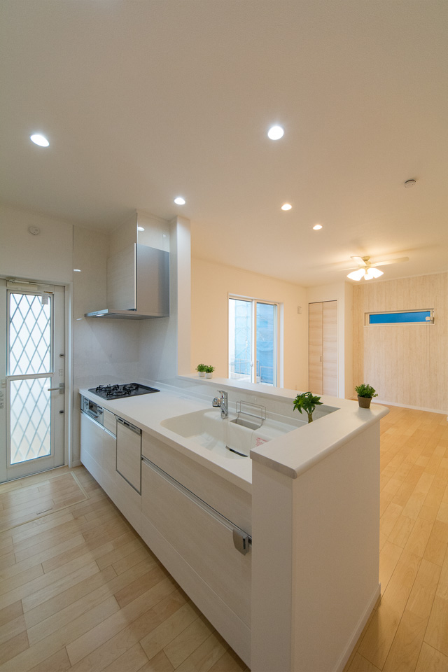 白を基調とした清潔感のあるキッチンスペース。