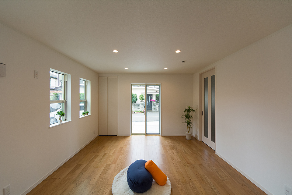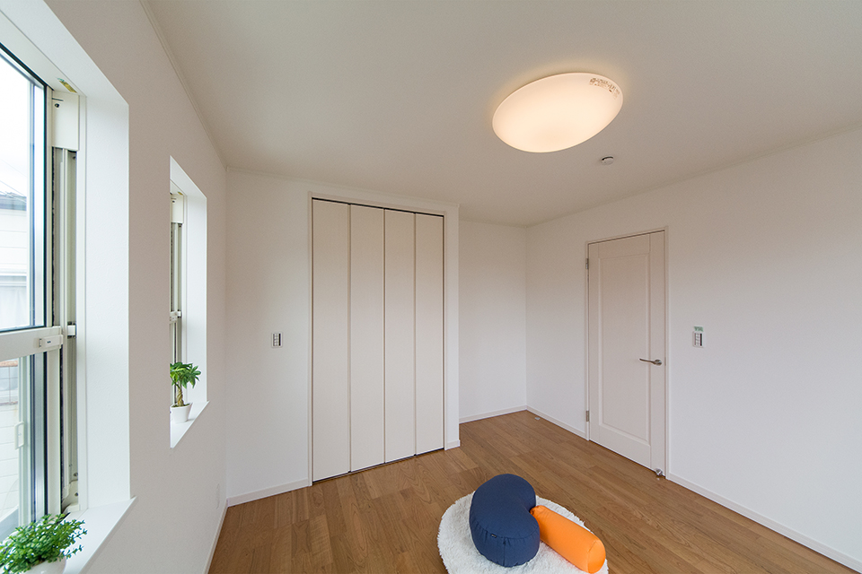 2階洋室。ブラックチェリーのフローリングがナチュラルな空間を演出します。