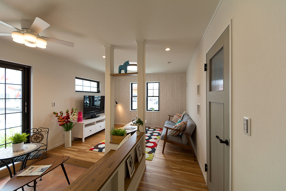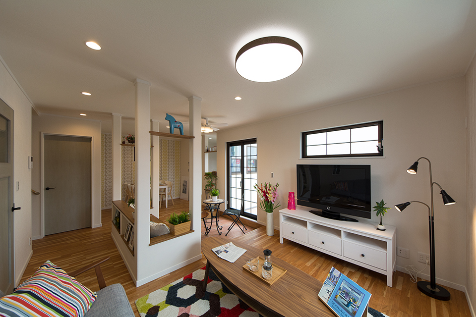 リビングにはインテリアファンを設置。空気の流れで快適な居住空間を可能に。