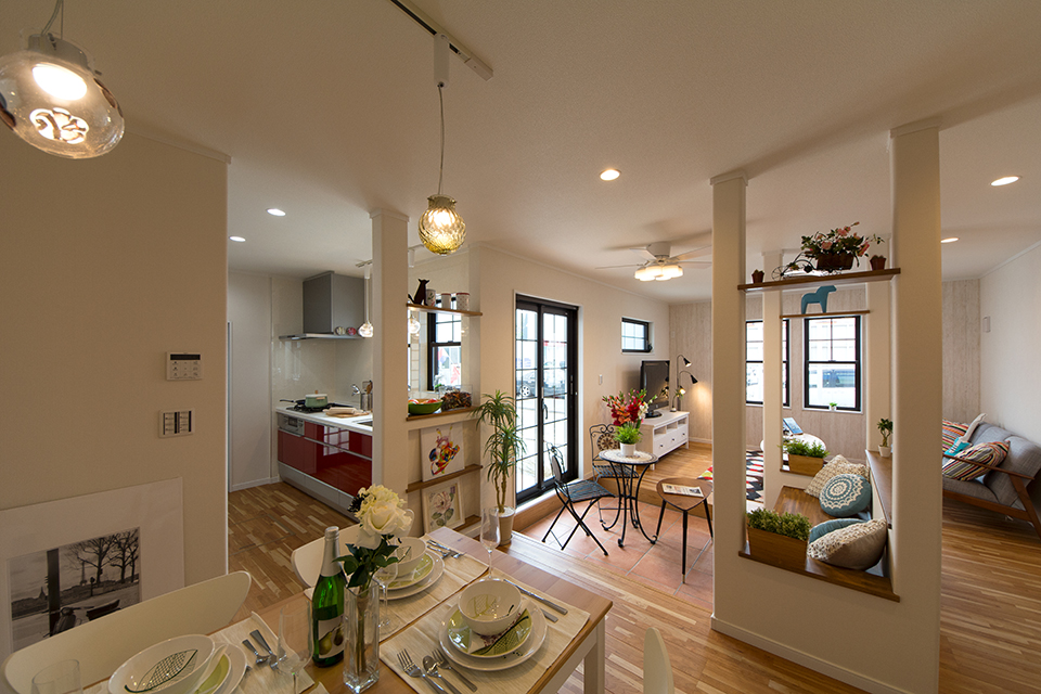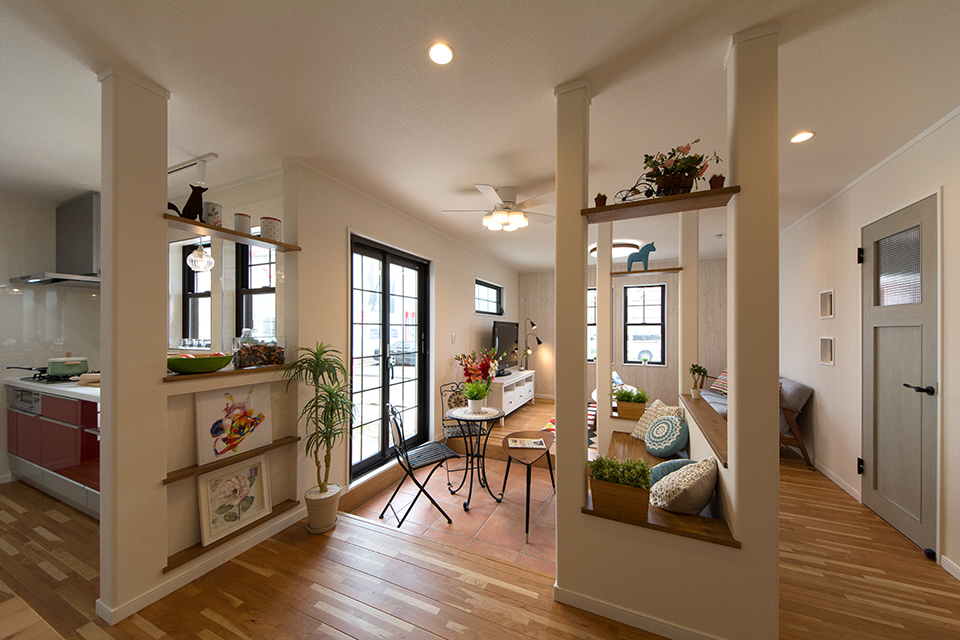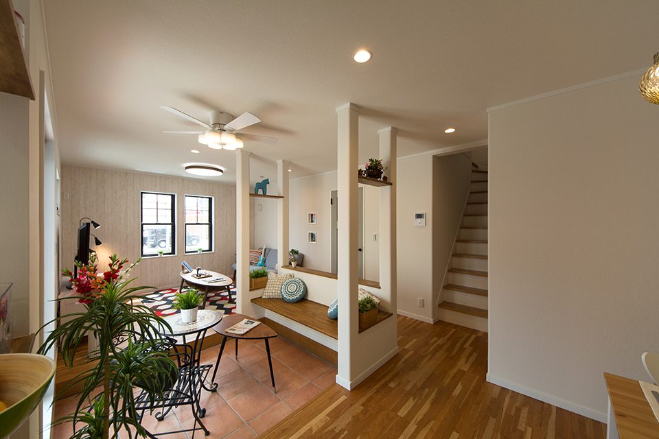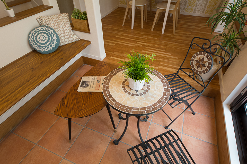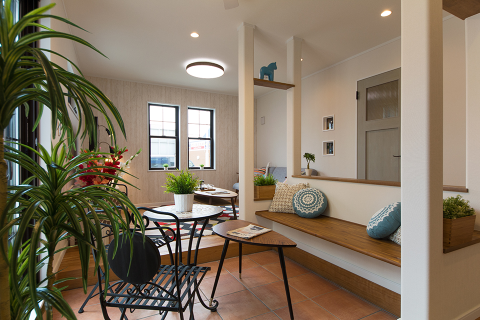 家族の笑顔が集うインナーテラス。ベンチシートで家族や仲間と楽しくティータイムなど楽しめます。