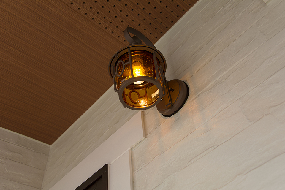 お洒落なアンティーク調のポーチライトがエントランスを彩ります。