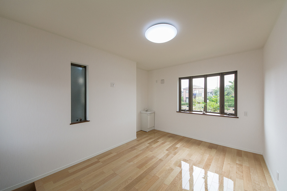 1階洋室。出窓から自然のやさしい光が射し込み心地良い空間。