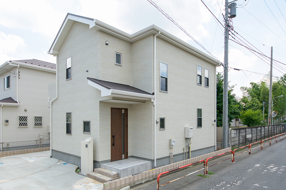 ベージュ系のシャープな石積み調サイディングを使用。 ベージュ系の温かみでナチュラルな雰囲気に仕上がりました。