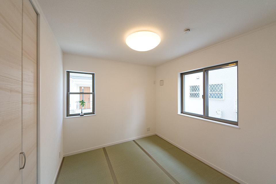 畳のさわやかなグリーンが空間を彩る1階畳敷きスペース。