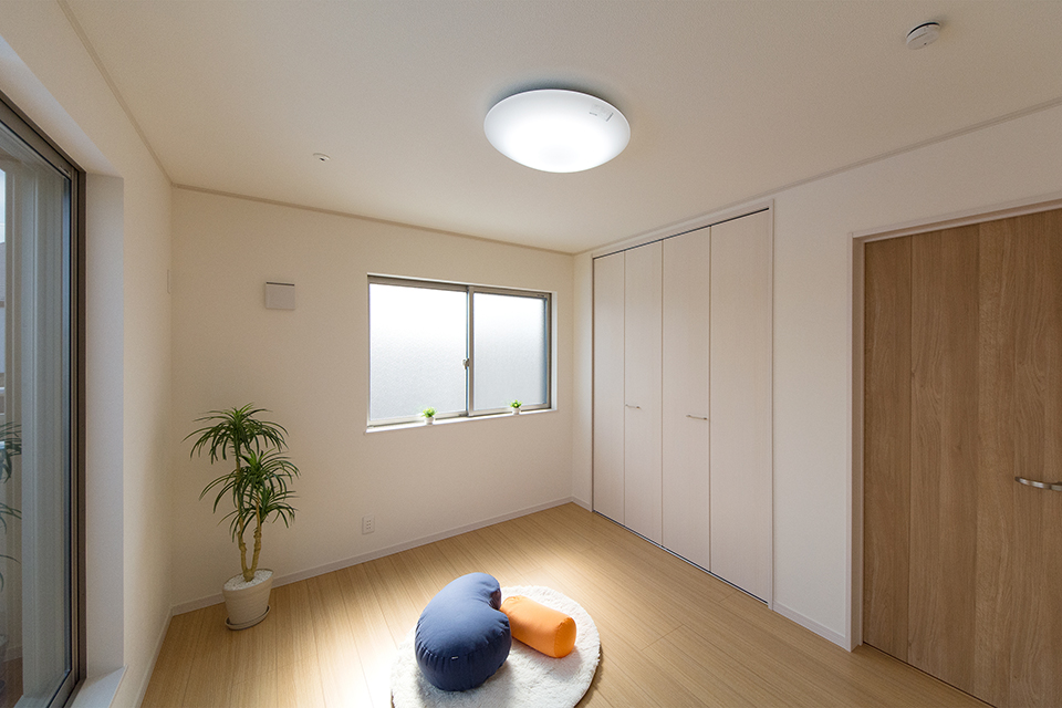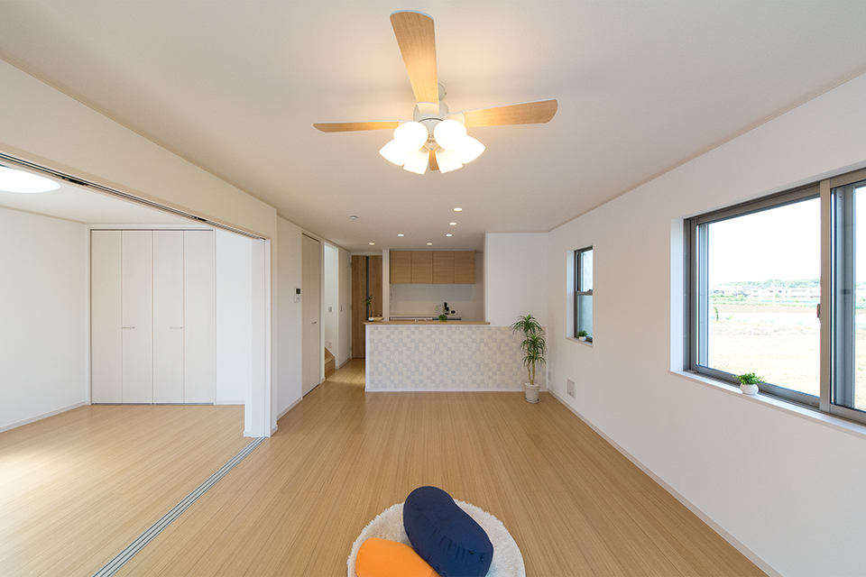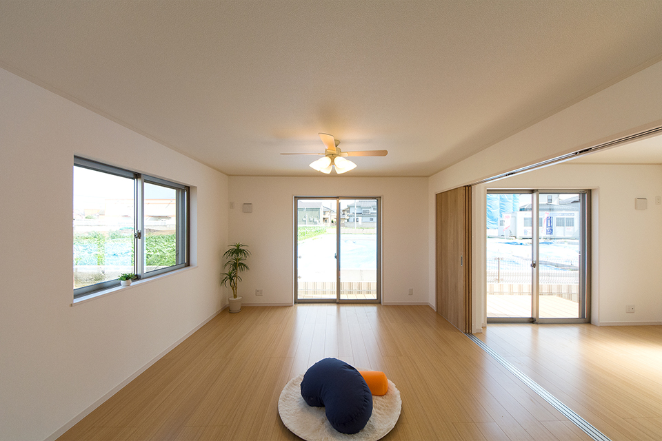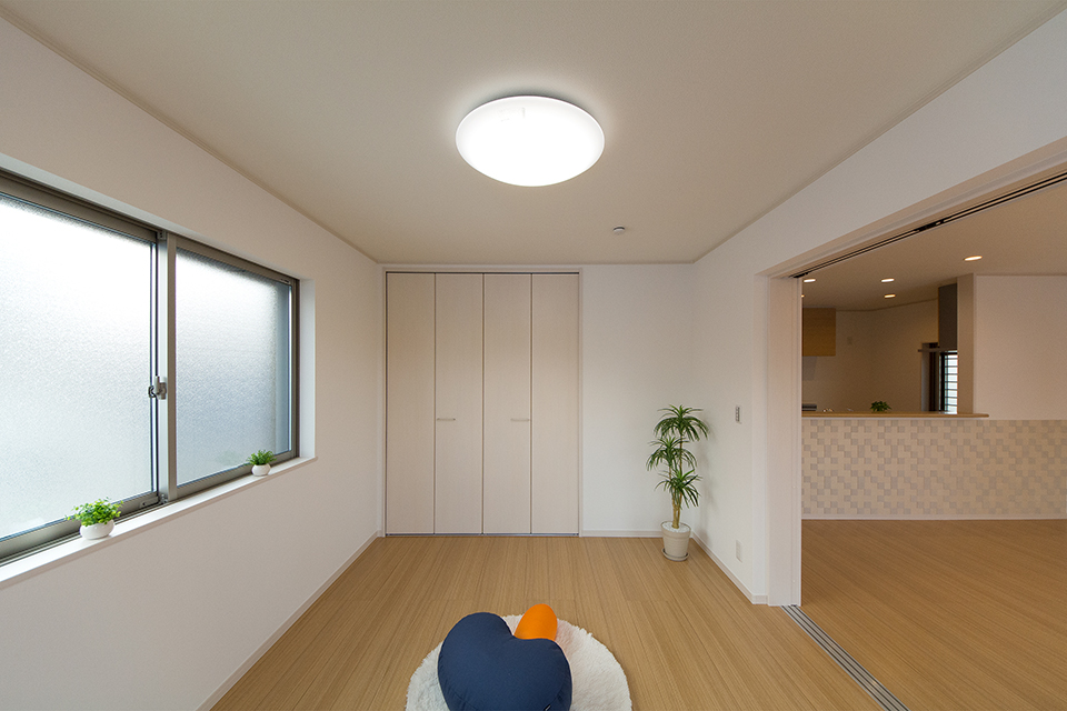 1階洋室。引き戸を開け放てばLDKと違和感なく調和し、開放感いっぱいの大空間に。