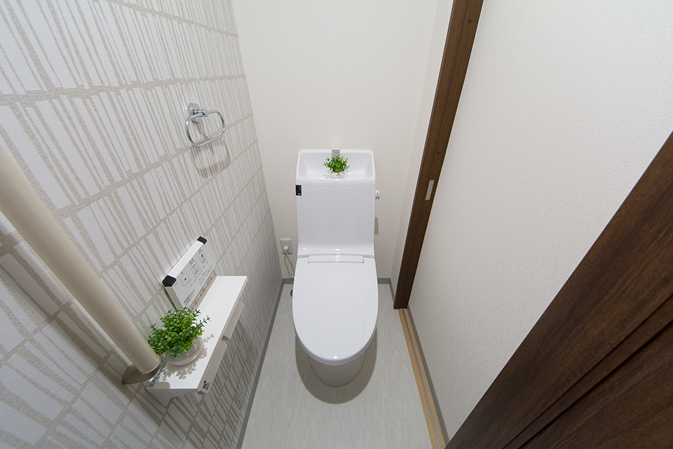 白を基調とした清潔感のある1階トイレ。