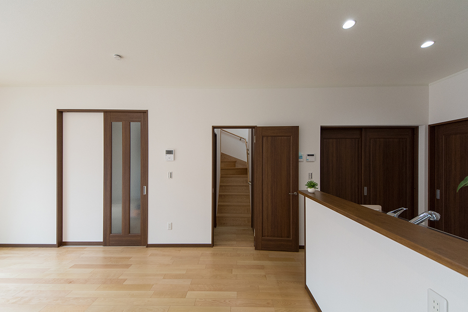 リビング側階段入口に扉を設置。冷暖房効率を良くするための工夫も。