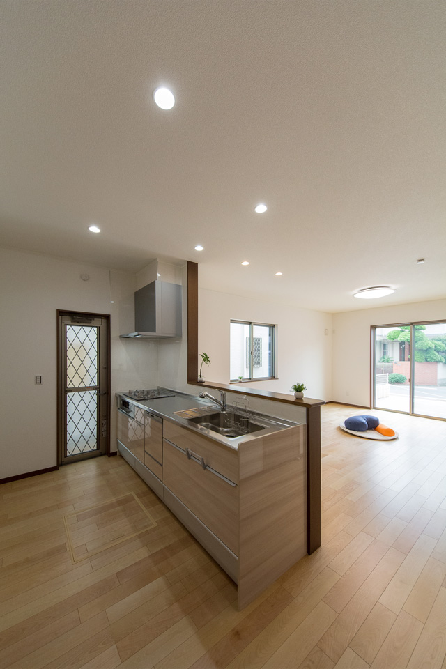 シンプルモダン埼玉県狭山市30坪以上玄関土間、リビングイン階段、ハイスタッド、アイランド/ペニンシュラキッチン