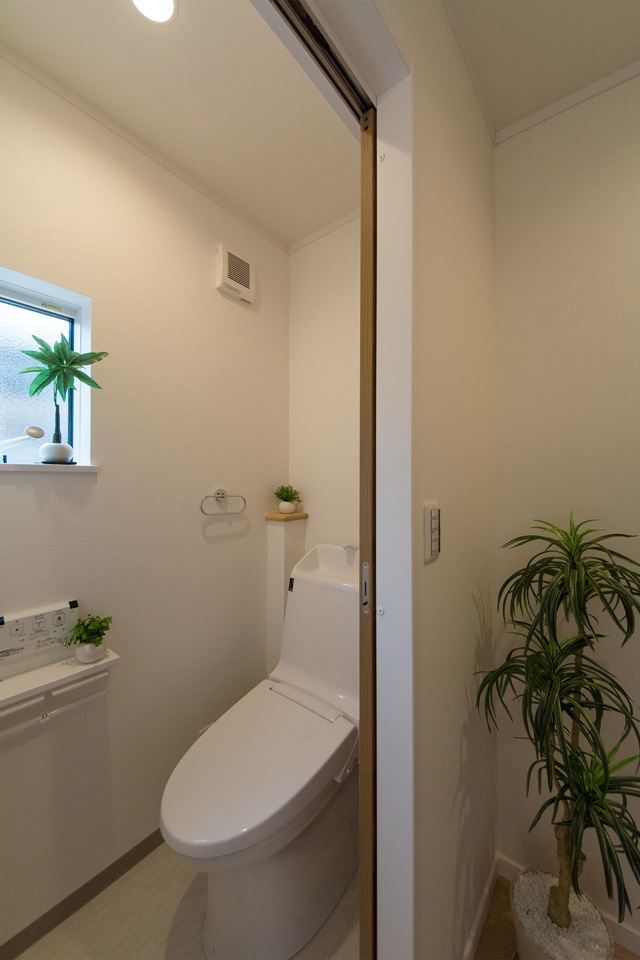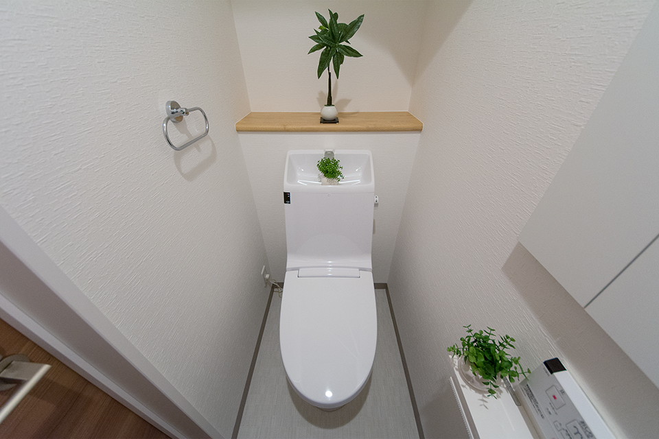 白を基調とした清潔感のある1階トイレ。