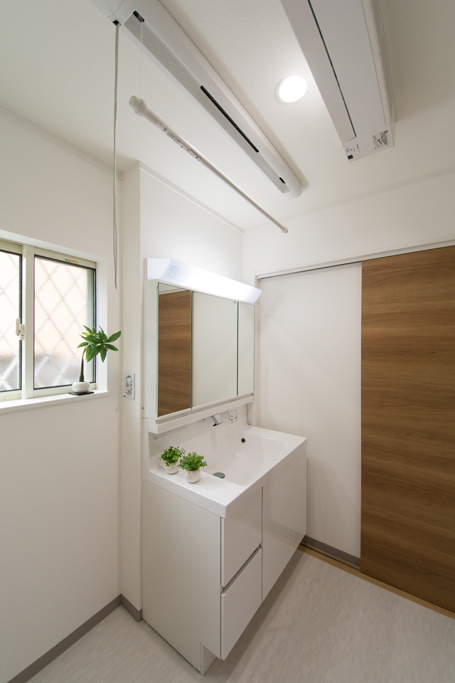 白を基調とした清潔感のあるサニタリールーム。