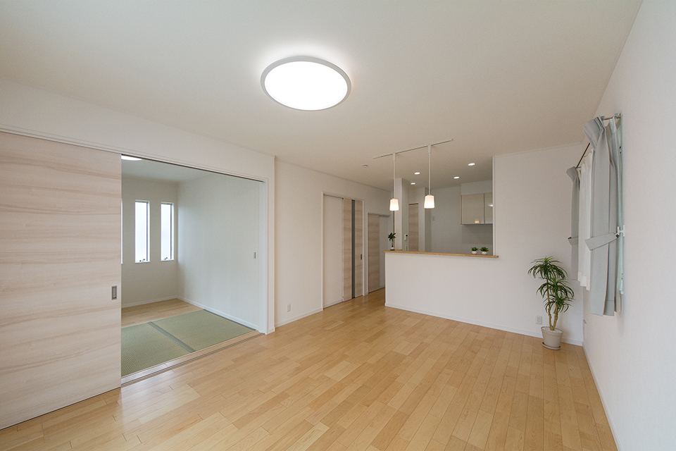 畳のさわやかなグリーンが空間を彩る1階畳敷きスペース。