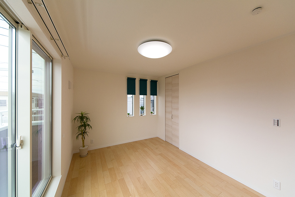 2階洋室。ハードメープルのフローリングが優しくてナチュラルな空間を演出します。