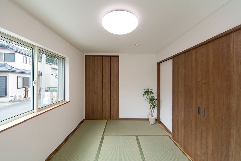 畳のさわやかなグリーンが空間を彩る1階畳敷きスペース。