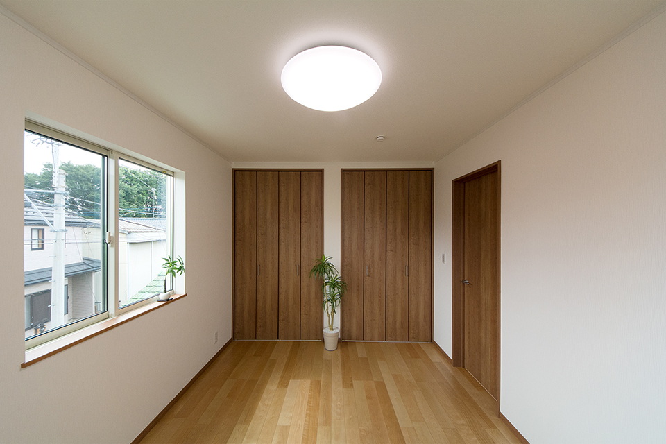 2階洋室。バーチのフローリングとチェリー調の建具が、リビング同様ナチュラルな空間を演出。