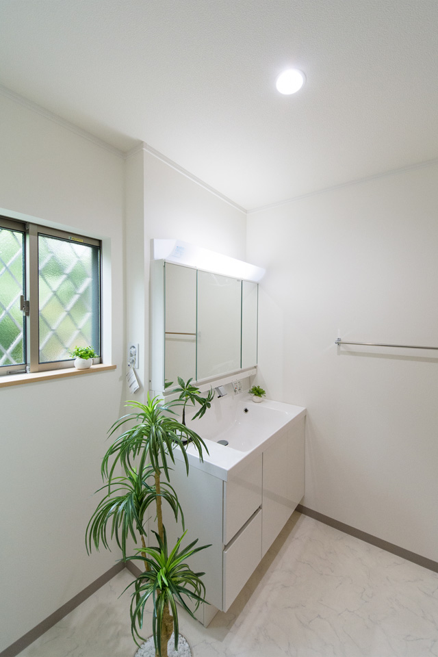 白を基調とした清潔感のあるサニタリールーム。
