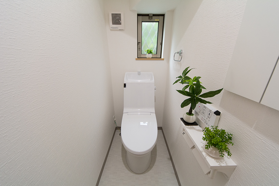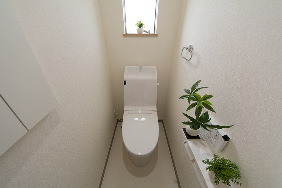 白を基調とした清潔感のある1階トイレ。